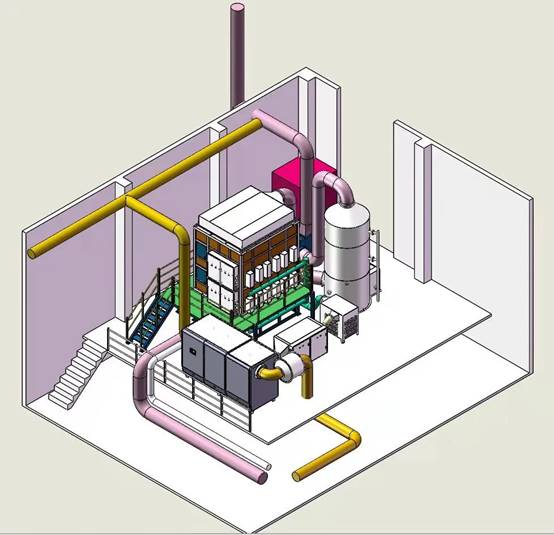 針對(duì)污染物特性及產(chǎn)生方式,首次采用“集中處理+循環(huán)凈化”的雙模式凈化理念。對(duì)池體、設(shè)備、容器等設(shè)施進(jìn)行密封做微負(fù)壓收集,采用“等離子體氧化+噴淋洗滌”的集中處理方式,凈化規(guī)模12000m3/h。同時(shí)對(duì)車(chē)間環(huán)境無(wú)組織排放尾氣采用我公司獨(dú)創(chuàng)的“無(wú)組織排放循環(huán)凈化一體機(jī)”對(duì)生產(chǎn)車(chē)間進(jìn)行全方位的整體治理。做到集中排放口優(yōu)于國(guó)家排放標(biāo)準(zhǔn),室內(nèi)空間無(wú)異味,廠界周邊不擾民的治理標(biāo)準(zhǔn)。