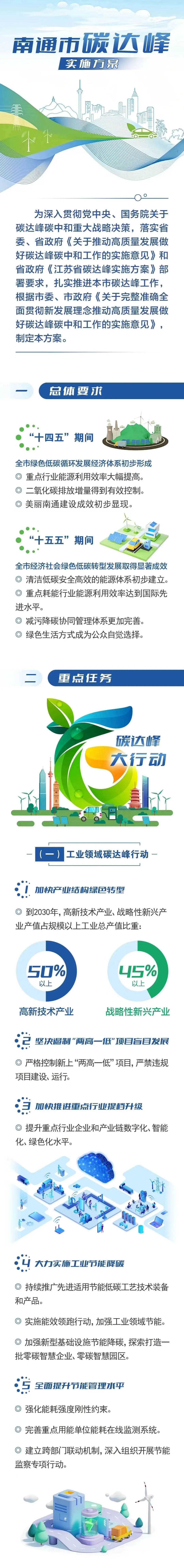 8月初,《南通市碳達峰實施方案》發(fā)布,提出重點實施工業(yè)領域碳達峰行動、能源綠色低碳轉(zhuǎn)型行動、交通運輸綠色低碳行動、城鄉(xiāng)建設領域碳達峰行動、綠色低碳科技創(chuàng)新行動、綠色低碳全民行動等“碳達峰六大行動”,構建完善碳達峰碳中和“1+N”政策體系,推動經(jīng)濟社會發(fā)展全面綠色低碳轉(zhuǎn)型。