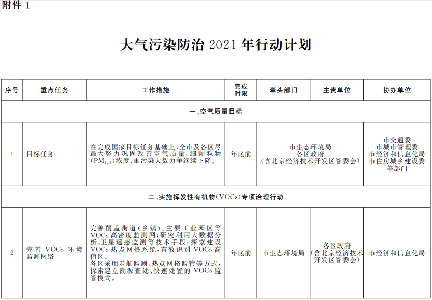 北京市為持續深入打好污染防治攻堅戰,進一步提升本市生態環境質量,印發《北京市深入打好污染防治攻堅戰2021年行動計劃》,詳情如下:
